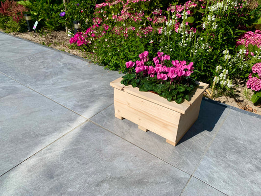houten plantenbak inclusief Cyclamen en potgrond.